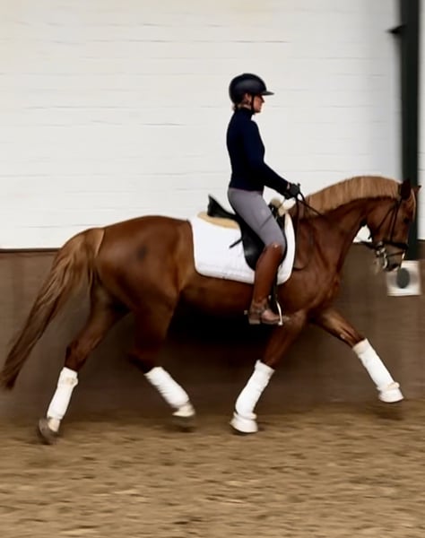 Amicelli ist ein absolutes Goldstück, nicht nur durch ihre außergewöhnliche Farbe, sondern auch durch ihre Rittigkeit und Lernbereitschaft. Sie verfügt über 3 gute Grundgangarten, wobei der Trab besonders hervorzuheben ist. Sie hat in diesem Jahr ihre ersten 2 Turnierstarts hinter sich, wobei sie sich auf dem zweiten Turnier mit einer Wertnote von 7,4 direkt auf dem vierten Platz platzieren konnte. Im Training haben wir mit Seitengängen begonnen. Amicelli ist äusserst sitzbequem und kinderlieb, was sie auch durchaus zum Familienpferd macht. Bei Interesse melden Sie sich bitte ausschließlich telefonisch unter : 0170-2767100 oder per WhatsApp. Ein Video kann bei Interesse zugeschickt werden.