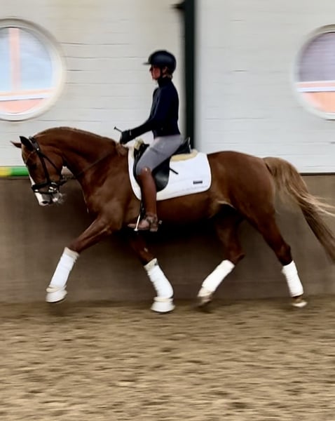 Amicelli is an absolute gem, not only because of her striking color but also due to her rideability and willingness to learn. She has three good basic gaits, with her trot being particularly impressive. This year, she has competed in her first two competitions, and at her second outing, she achieved a score of 7.4, which placed her directly in fourth position. In training, we have started working on lateral movements. Amicelli is extremely comfortable to ride and very child-friendly, making her an ideal family horse. If interested, please contact me exclusively by phone at 0170-2767100 or via WhatsApp. A video can be sent upon request.