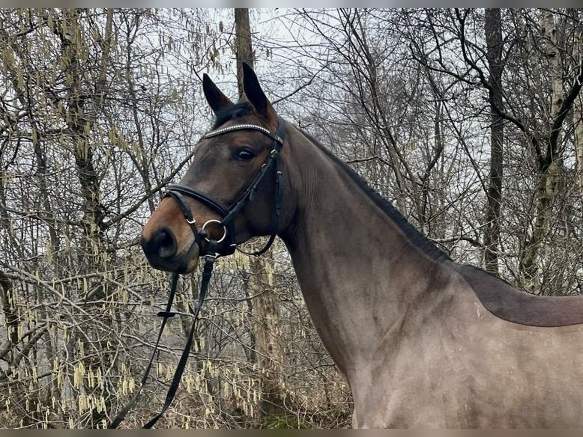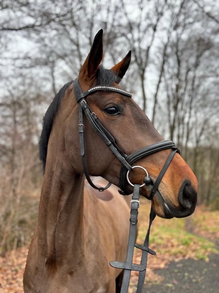 Zum Verkauf steht eine schicke braune Stute mit einem Stockmaß von ca. 164 cm. Sie stammt ab von Louis Le Bon (von Lancer II) aus einer Arpeggio-Mutter. Die Stute wurde bei uns behutsam angeritten und zeigt sich unter dem Sattel stets brav, neugierig und kooperativ. Sie ist jetzt ca. Ein halbes Jahr im Training. Auch im täglichen Umgang ist sie unkompliziert und freundlich. Sie verfügt über drei schöne, taktreine Grundgangarten. Einzelne kleine Sprünge unter dem Reiter hat sie auch bereits ruhig und mutig absolviert. Für die weitere Ausbildung wünschen wir uns für sie ein liebevolles neues Zuhause – ob im Freizeitbereich oder mit Perspektive für den Sport. Sie bringt alle Voraussetzungen mit, um mit passender Förderung zu einem tollen Partner heranzuwachsen. Klinische Untersuchung und Röntgenbilder ohne Befund.