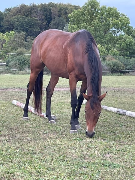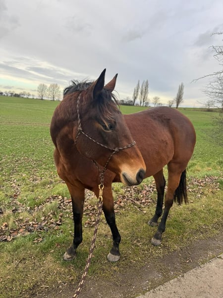 Idola ist eine hübsch gebaute, kompakte Deutsche Reitpferde(Vollblut) Stute, geboren im Jahr 2019, mit einem Stockmaß von ca. 157 cm. Als 13/16-Vollblutstute überzeugt sie durch ihre elegante Erscheinung und ihren feinen Ausdruck. Sie ist gesund und wurde stets gut versorgt. Lediglich in der Rosse zeigt sie ein hormonelles Problem, welches bekannt ist und entsprechend berücksichtigt werden sollte. Sie besitzt einen feinfühligen, liebevollen Charakter und reagiert aufmerksam auf ihre Bezugsperson. Beim Schmied und beim Tierarzt ist sie artig, zudem ist sie verladesicher. Sie kennt sowohl Boxenhaltung mit Weidegang im Winter als auch 24/7-Weidehaltung im Sommer und ist an gemischte Herdenhaltung gewöhnt. Unter dem Sattel ist Idola in allen drei Grundgangarten ausgebildet. In der Dressur befindet sie sich auf dem Weg zum A-Niveau, kleinere Sprünge meistert sie problemlos. Im Gelände zeigt sie sich sicher, sowohl alleine als auch in der Gruppe. Auch in der Bodenarbeit ist sie lernbereit und motiviert. Sie ist kein Anfängerpferd, sondern sucht einen erfahrenen Reiter oder eine erfahrene Reiterin mit Verständnis für Vollblüter und deren besondere Sensibilität. Idola wird ausschließlich in gute, erfahrene und verantwortungsbewusste Hände abgegeben.