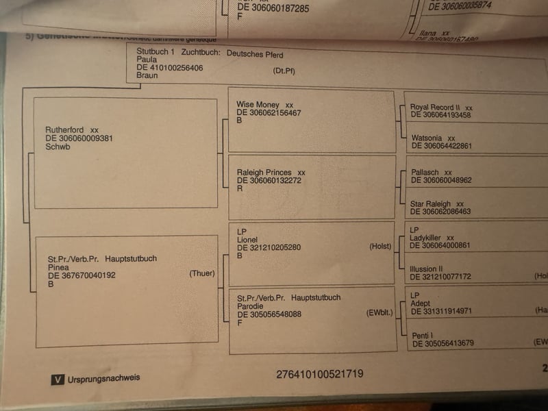PaulaRUTHERFORD XXPINEA (Thüringen)WISE MONEY XXRALEIGH PRINCESS XXLIONEL (HOLST.)PARODIE