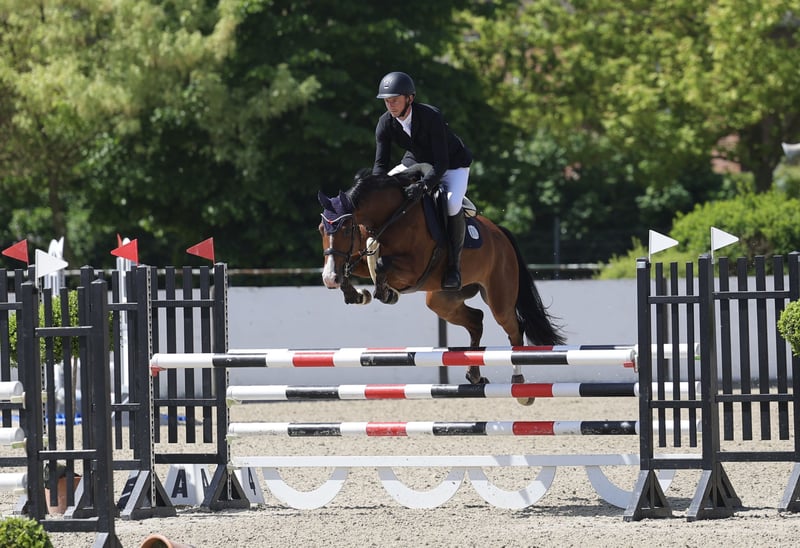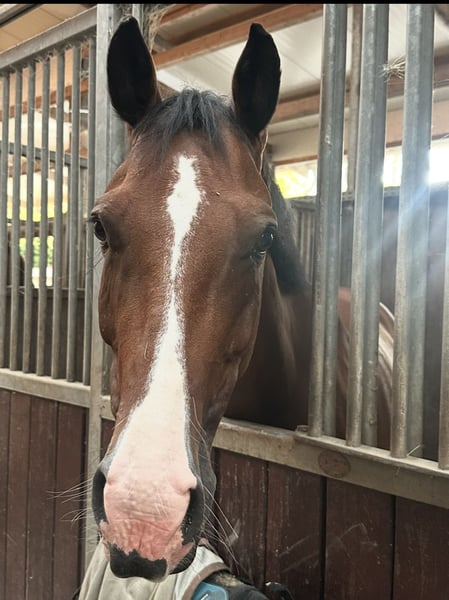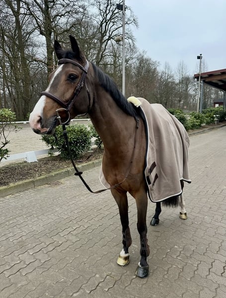 Cinnamon is an 8-year-old beautiful mare by Casalido, out of a Quintero mare. Although she is of smaller stature (height at 1.64 m), she possesses three very good basic gaits and shows great talent in jumping. She is very brave and has plenty of go, yet she is also very cautious at the jumps and always aims to get to the other side. Cinnamon is very people-oriented and always well-behaved with other horses. She is accustomed to sharing pastures and paddocks with both geldings and other mares. Naturally, she is farrier- and loading-trainable, and she rides confidently both in trailers and transports. She is familiar with competitions in indoor and outdoor arenas. She behaves confidently on the lunging circle. Cinnamon also knows trail riding both alone and with other horses. Since the mare can be quite spirited in the show jumping course and can sometimes be more sensitive to her surroundings, she requires a rider with sufficient experience. Therefore, she is not suitable for beginners. She is currently placed multiple times at M level. Videos can be sent upon request. For more information and to arrange a viewing, we look forward to receiving your message.