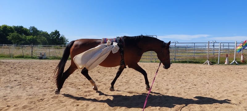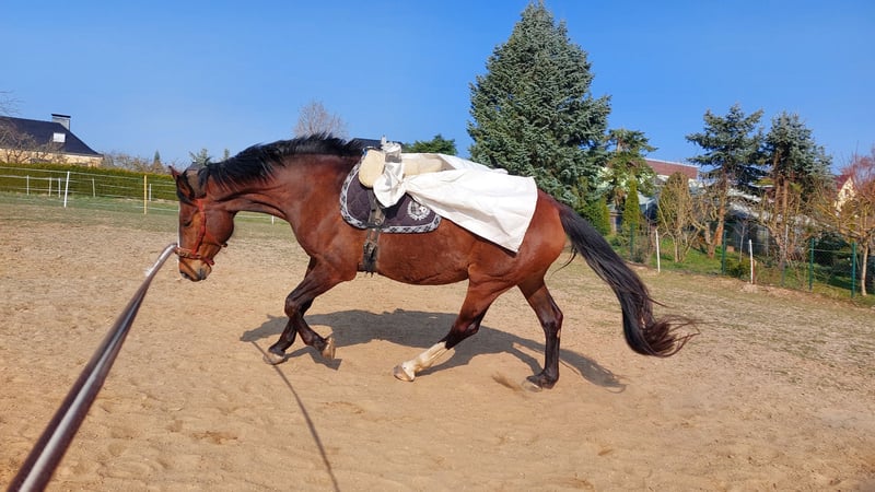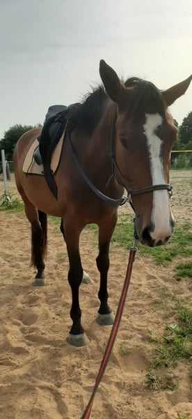 Ta wspaniała klacz szuka domu na 10 gwiazdek w stajence otwartej. Urodziła się u mnie 9 lat temu i mieszka w mieszanej stadzie. Jest w pełni jeżdżona bez uzdy (na brąz), opanowała na palec wskazujący parkowanie przy pomocy wsiadacza. Wobec nowości jest zawsze ciekawa, choć czasem robi duże oczy, ale jest otwarta na nowe doświadczenia i towarzyska na całe życie – pójdzie z Tobą wszędzie, jeśli zdobędziesz jej serce. W przypadku poważnego zainteresowania proszę o krótkie przedstawienie.