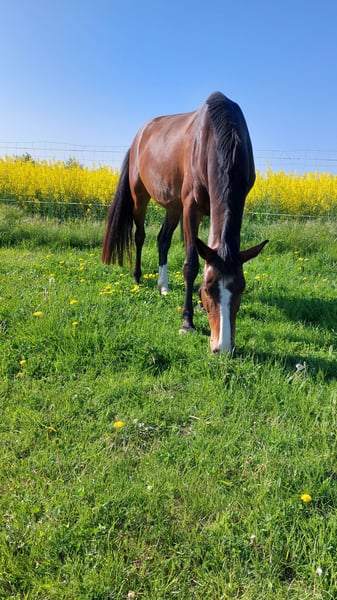 Diese tolle Stute sucht ein 10 Sterne Zuhause in Offenstallhaltung. Sie kam vor 9 jahren bei mir zur Welt und lebt in einer gemischten Herde . Sie ist komplett Gebisslos gearbeitet (angeritten)und beherrscht auf Fingerzeig das einparken an der Aufstiegshilfe . Neuem gegenüber ist sie nach großen Augen machen stets aufgeschlossen und eine kumpeline fürs Leben die überall mit dir hingeht wenn du ihr Herz erobert hast. Bei ernsthaften Interesse bitte eine kurze Vorstellung