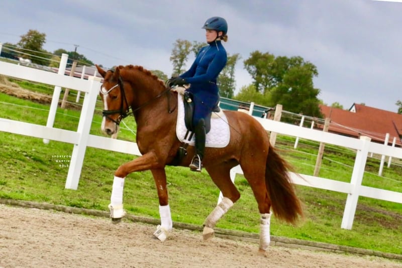 | Advertisement | Location: Recke, 49509 | Hanoverian | Gelding | Chestnut | Born 2021 | 16.1 hh | Sired by Ellis out of Zack We present "Edgar," a promising young sport horse for the grand arena. Besides his attractive appearance, Edgar is equipped with three convincing basic gaits. He spent the summer months enjoying time on the pasture and in the herd, only coming under saddle as a four-year-old. In handling, Edgar is absolutely well-behaved and affectionate. Under saddle, he learns very quickly and strives to please his rider. Even from Edgar’s pedigree, one can expect rideability and willingness to perform. He descends from a line of highly successful sport horses on both sides: his sire Ellis, his dam’s sire Zack, and Don Schufro on the dam’s side, all renowned for their own achievements and their successful offspring. With further development, we see Edgar as a future candidate for advanced dressage. https://youtu.be/EaYYLbF4kfI?si=nuyl2l09oIoVHyVC A radiological examination (X-ray) report is available and shows no abnormalities. For serious inquiries, please contact us by phone at +49 170 7941333.