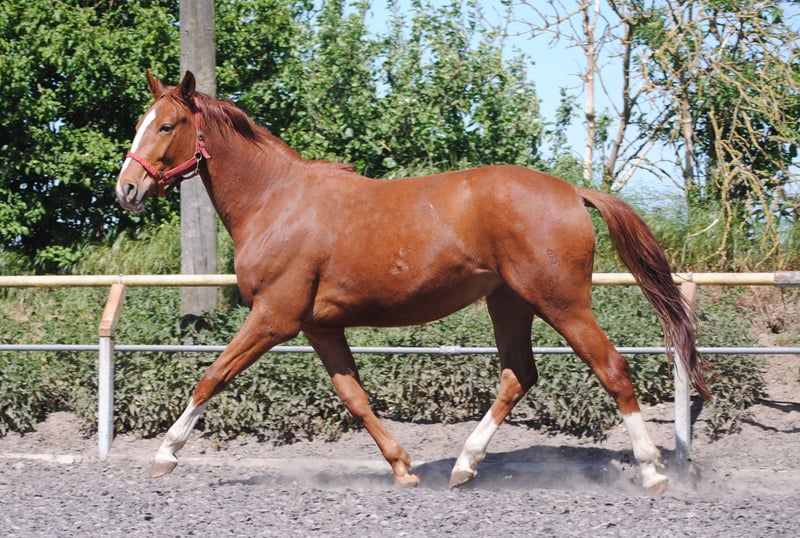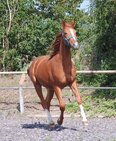 Come presagio della primavera, una volpe colorata ha aperto la stagione dei puledri di quest'anno. "Mon Ami" di Le Chevalier e Marjellchen di Marduc hanno stupito tutti. Che base forte, che eccellente attacco al collo e poi le dimensioni enormi. Con energia vitale in pochi minuti dopo la nascita sulle gambe e sulla mammella, quindi le prime impressioni. All'età di due giorni, il figlio più giovane della figlia di 20 anni Marduc ha fatto meglio nella sua prima passeggiata, in cui ha mostrato movimenti di primissima qualità. Una galoppata in salita degna di questo nome e momenti di trotto che ti fanno aspettare molto. Gli intenditori, naturalmente, registrano immediatamente la consanguineità desiderata sul nostro ex sire principale Marduc, che ha portato un successo visibile qui. Marjellchen, premiata con il premio dell'associazione allo ZfdP come cavalla espositiva nazionale ad Altefeld, sarà probabilmente una delle ultime figlie attive di Marduc. Suo figlio "Mon Ami" è ora registrato come cavallo di sangue nobile tedesco presso la ZSAA. Attendiamo già con impazienza la valutazione. Notevole è la sua grande somiglianza con il fratellastro paterno Lamiro, che purtroppo dobbiamo crescere senza una madre. Mon Ami è stato premiato con 2 stelle in occasione della Fohlenschsu.