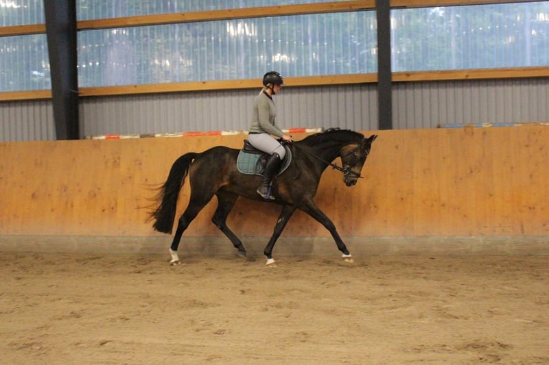 For sale is a particularly stylish 5-year-old gelding (father Palomino, which is why he looks so light in the face)! Equipped with three good basic gaits, we wish for this lovable gelding to find a great home, perhaps as a transition horse, ladies' horse, or a well-riding youth, as he is not a giant. Griffin was only started late this spring, which is why he is still unspoiled! He is currently still in professional training, and the price will increase with further education. Griffin can be ridden in all three basic gaits, is already jumping a small course, and shows great caution there! He can also already perform a flying change. He has confidently completed his first outings in the field and shows himself to be very cool and brave for his age. Of course, he is still very "green" and inexperienced and should have an experienced rider in the saddle who can further educate and support him. I can also very well imagine Griffin in eventing! He is good with loading and shoeing! A trial ride is possible for a fee of €30, which will be deducted from the sale price, of course. We do not want riding tourism. The horse has been started gently and correctly and should not have bad experiences from chaotic trial rides. His teeth were done in spring, Griffin is vaccinated and regularly dewormed. Furthermore, we have had X-rays taken of his back, which correspond to a 1st class TÜV! (We do this to ensure that nothing stands in the way of carrying a rider's weight before the horse is to be ridden). Of course, an interested party can have a vet check done. Videos can be sent upon request.