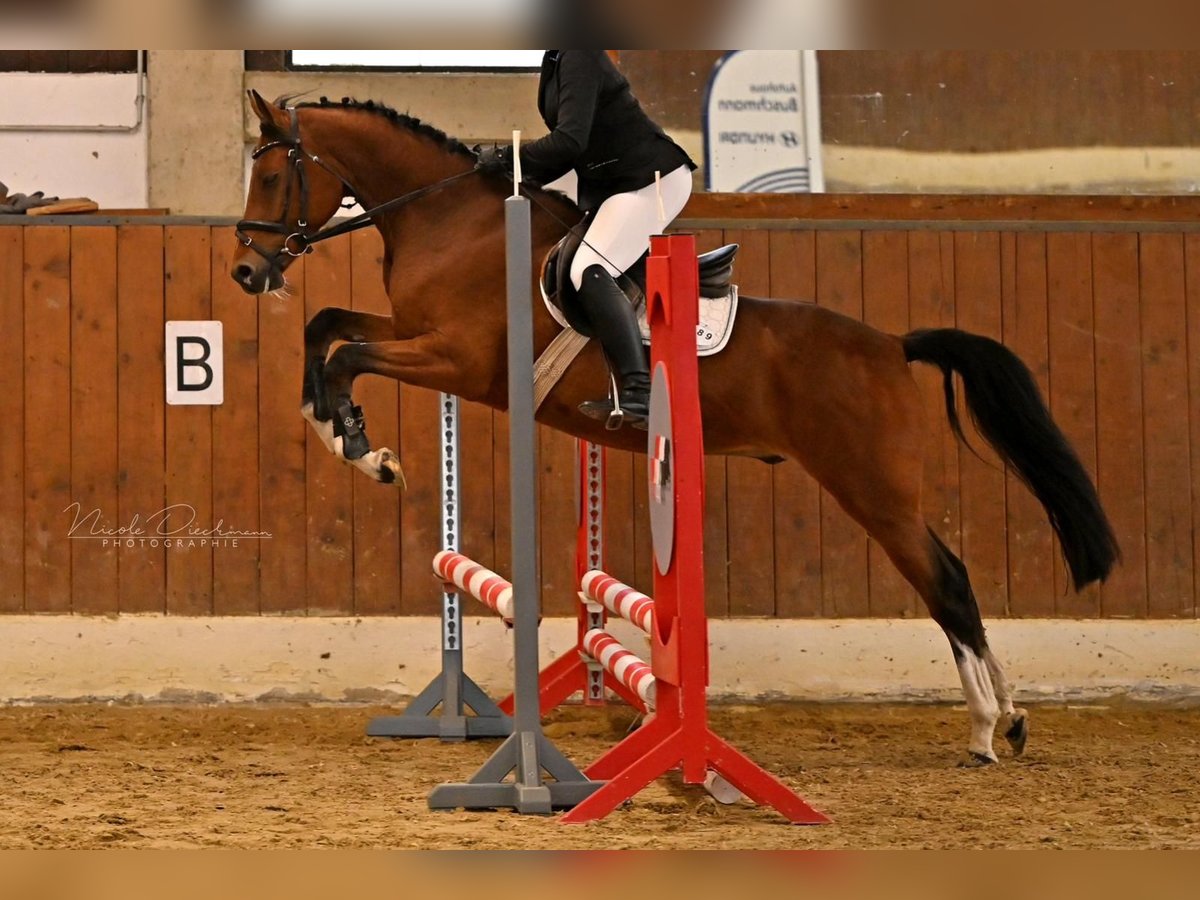 Zum Verkauf steht unser 5-jähriger, 1,60 m großer Hesselteich Wallach. Er überzeugt durch sein ausgeglichenes Wesen und ist im täglichen Umgang stets brav und unkompliziert. Auch jüngere Reiter kennt er bereits und zeigt sich dabei zuverlässig und rittig. Im Oktober stellte er sich erstmals auf einem Turnier vor und konnte sich direkt im Springreiterwettbewerb, mit einer noch unerfahrenen Reiterin, eine Platzierung sichern. Dabei bewies er Nervenstärke und Leistungsbereitschaft. Er kennt zudem das Gelände und zeigt sich auch dort souverän. Aktuelle, gute Röntgenbilder liegen vor. Gesundheitlich gab es bei uns keinerlei Probleme.
