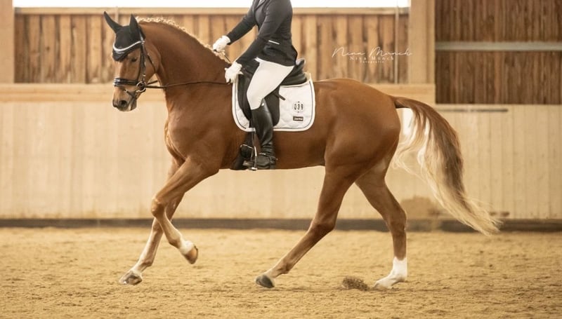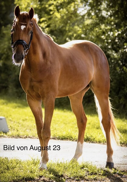 Zum Verkauf steht ein bildhübscher Fuchswallach, geboren im Jahr 2020. (Video aktuell, März 2026!) „Herzi“ ist auf einem sicheren Dressurpferde A Niveau, L-Lektionen begonnen (im Grunde alle vorhanden). Er kennt Anhänger, Waschplatz, Putzplatz, Koppel, Gelände, Reitplatz, Turnier… Dank seines altersgerechten Entwicklungsstands eignet er sich ideal für ambitionierte, erfahrene Reiter, die einen talentierten Nachwuchssportler mit drei ansprechenden Grundgangarten suchen. Herzi benötigt jedoch eine konsequente, erfahrene Hand, mit der er sich noch weiter entwickeln kann. Da ich ihm diese nötige Zeit, aufgrund meines beginnenden Abiturs, nicht mehr gewährleisten kann, gebe ich ihn in gute Hände ab. Ein passender Sattel und seine Trense können bei Bedarf auch mit abgegeben werden. Der Wallach ist gesund, wurde regelmäßig entwurmt und geimpft. Herzi hatte Ende 2025- Beginn 2026 eine leichte Sehnenscheidenentzündung (weshalb er jedoch nie gelahmt hat oder Ähnliches), trotzdem hab ich ihn mehrere Wochen Pause gegeben, es ist alles verheilt (Ultraschallbilder vorhanden) und Herzi hatte und hat keinerlei Beeinträchtigungen. -> alles nach tierärztlicher Absprache Bei Interesse oder für weitere Informationen gerne bei mir melden. Eine Besichtigung und Proberitt sind nach Absprache möglich.