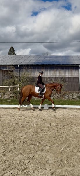 Ich suche ein neues Zuhause für meinen Dressur Wallach. Er ist ca 168 groß, ein Traum im Umgang, beim reiten auf Grund des Alters aber nicht Anfänger geeignet. Er ist fein und harmonisch zu reiten, nicht schreckhaft oder guckig, braucht aber in ungewohnten Situationen Vertrauen vom Reiter. - Ausbildungsstand: begonnen mit L Lektionen - Verträgt sich super mit Stuten & Wallachen. - Kennt Hunde und Alpakas. - vorne Beschlagen, hinten barhuf - kennt Führanlage, Freispringen, Reithalle und Platz - neuwertiger Sattel und Trense dazu erhältlich Beim Hufeauskratzen hinten tut er sich etwas schwerer, vor allem wenn er länger stand (Shivering ähnlich) beim reiten, rückwärtsrichten, Hängerfahrten etc merkt man davon nichts. Deshalb ist er trotzdem weit unter seinem eigentlichen Wert abzugeben. Kein Notverkauf und nicht an Händler und Vermittler. Nicht an Schul/ Volti Betriebe oder Gewichtsträger. Er wird auf Grund beruflicher Veränderung & Zeitgründen abgegeben.