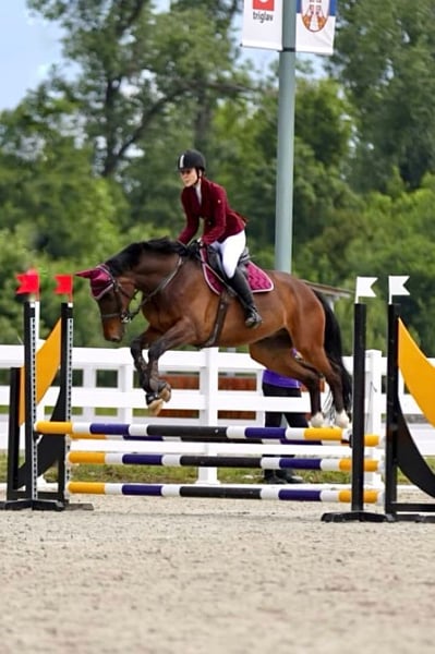 Cheval de sport demi-sang à vendre, hongre, 9 ans, 165 cm au garrot, situé à l'hippodrome de Belgrade (Serbie). Expert en saut d'obstacles et dressage, très fiable et expérimenté en extérieur. Sociable avec les autres chevaux et les humains. Courageux, très stable mentalement, transportable sans problème et calme en box. Une radiographie a été réalisée il y a un an et demi, et elle ne présentait aucune anomalie.