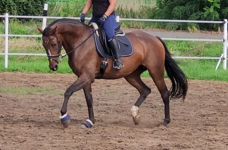 Zum Verkauf steht ein typvoller,bewegungsstarker Jährlingshengst,geb. im April 2025 mit hochinteressanter Dressurabstammung AbstammZumung: Vater: Lindgren ( Le Formidable x Ampere) Mutter: Batida von Borsalino Muttervaterlinie: Zonik - Diamond Hit Stamm der Neustädter P- Linie Mit dieser Abstammung vereint dieser Junghengst bewährte Dressurgenetik mit Rittigkeit, Elastizität und Leistungsbereitschaft, zudem ist er sehr menschenbezogen und brav im Umgang. Lorenzo ist seit Ende Oktober abgesetzt und befindet sich im Aufzuchtstall in einer gemischten Herde.Da dort nun aber die Pferdehaltung aufgegeben wird,muss er Ende Februar wieder umziehen und wird deshalb aktuell zum noch günstigen Preis angeboten. Wer auf der Suche nach einem Nachwuchspferd mit Perspektive ist,sollte sich diese Chance nicht entgehen lassen. Auch Batida, die Mutter von Lorenzo steht zum Verkauf. Ein aktuelles Video ist leider zur Zeit nicht möglich. Bei ernsthaftem Interesse freuen wir uns über Ihre Kontaktaufnahme. www.pferdehofamweiler.de