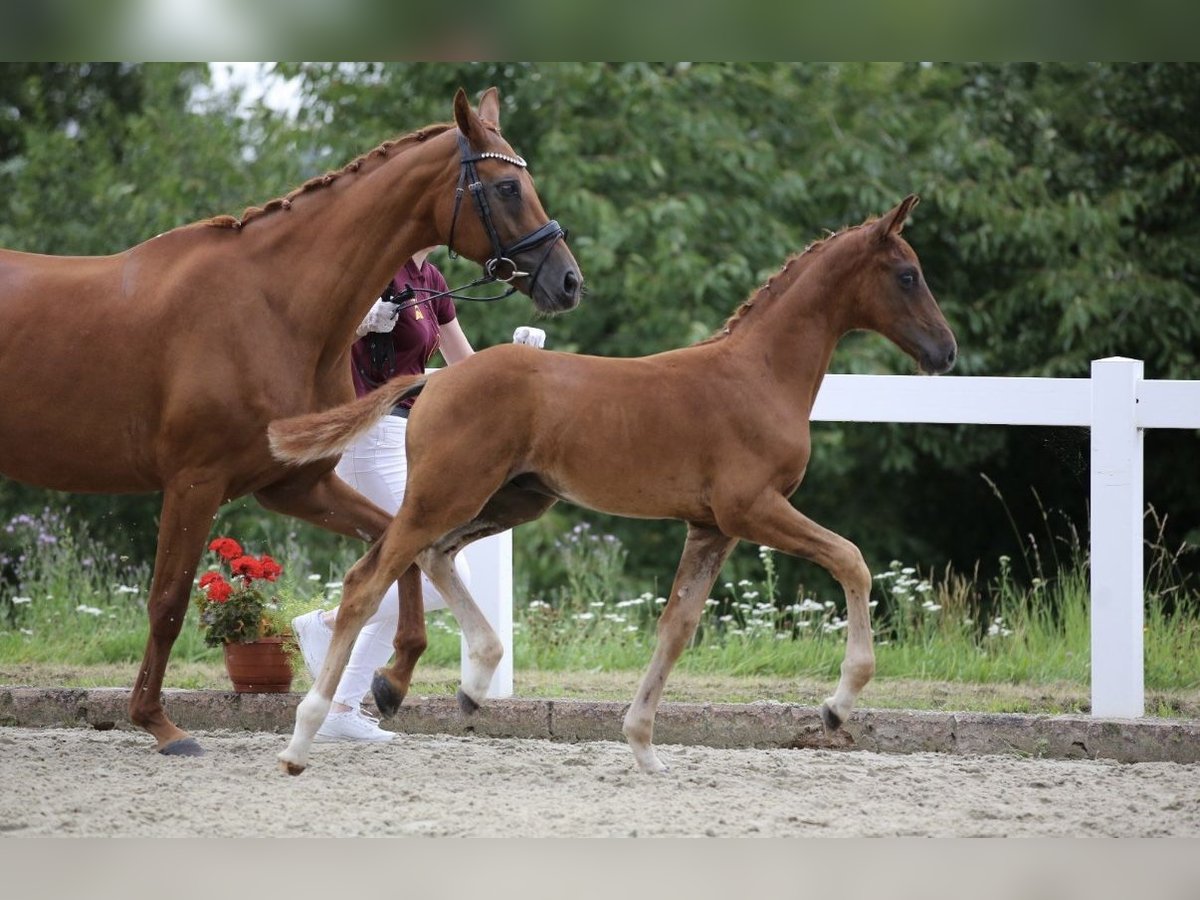 Interesante potra de dos años, hijo de Va Bene x Quaterback – con potencial para deporte y licenciamiento Se ofrece a la venta un ejemplar de dos años de gran calidad, con una excelente genealogía de Va Bene x Quaterback. Este joven semental combina un aspecto moderno, mucha expresión y un movimiento elástico y potente, con una tendencia natural a la recolección. Se presenta con una mecánica muy buena, activa detrás y con mucha libertad en los hombros, cualidades que lo hacen especialmente interesante tanto para la alta doma como para la cría. Debido a su tipo, calidad y fuerza en el movimiento, consideramos que es un candidato prometedor para una futura licenciamiento. En su edad, todavía está sin montar, pero en el trato diario se muestra tranquilo, atento y fácil de manejar. Está acostumbrado a cepillarlo, llevarlo a la cuerda y a las tareas básicas de manejo. Actualmente crece de forma adecuada a su edad y ha podido desarrollarse con calma y sin presión, lo que le proporciona las mejores condiciones para un futuro deportivo sostenible. La venta se realiza exclusivamente a un lugar adecuado que reconozca y fomente su potencial. No depende de la venta, por lo que solo se entregará en un entorno correcto y con una oferta adecuada. La razón de la venta es simplemente que el deporte ecuestre no encaja actualmente con mi situación de vida. Si está interesado en serio, agradecería un mensaje con una breve descripción del posible lugar de destino. ¡EL PRECIO ES SIMBÓLICO!