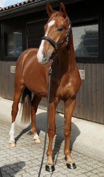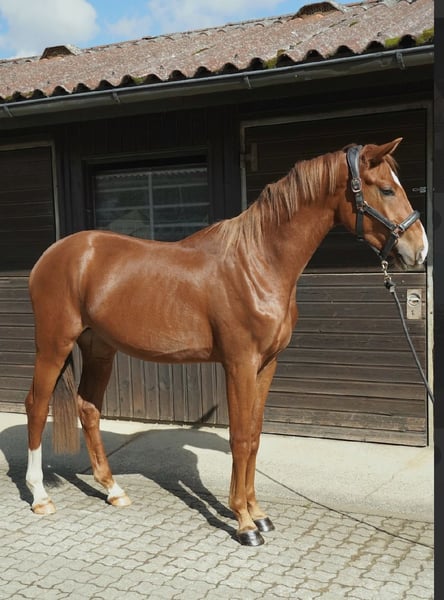 **German Sport Horse** For sale is a promising 2.5-year-old stallion. **Features:** - **Breed:** German Sport Horse - **Color:** Chestnut - **Height:** 16.1 hh - **Discipline:** Dressage & Leisure This young stallion impresses with his harmonious conformation and his balanced, friendly nature. He already shows promising potential in dressage work and has the ability to further develop in this area. He is well-socialized, familiar with handling by people and other horses, and is ready to move to a new home where he can be nurtured and challenged. If you are interested or have any further questions, please feel free to contact me. Viewings are possible by prior arrangement. We look forward to hearing from you!