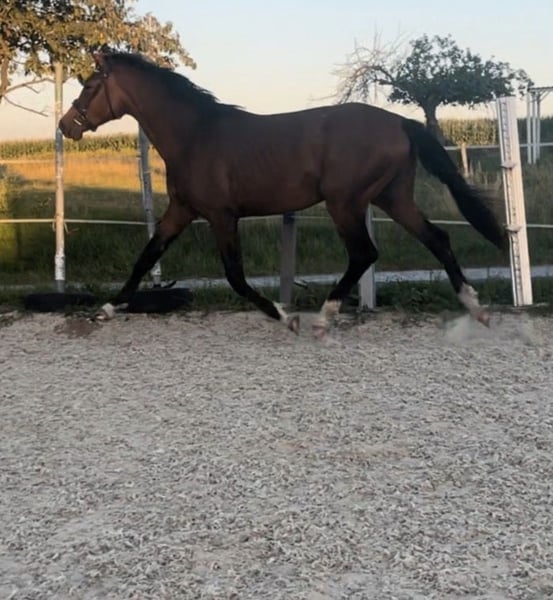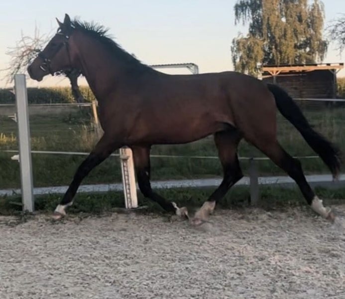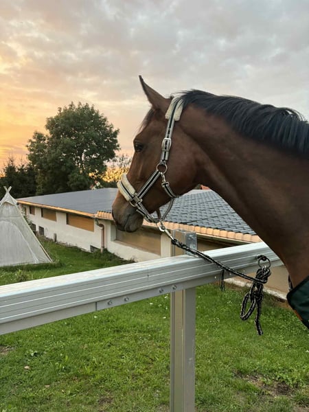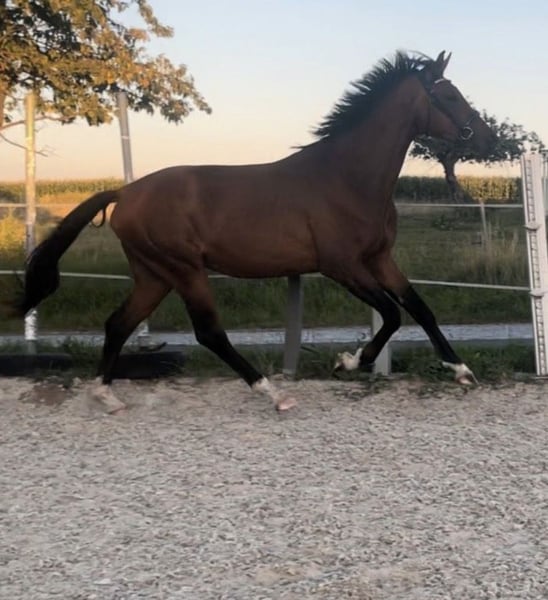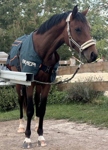 Angeboten wird ein Hengst von Escolar NRW x For Dance. Geboren 03/23. Eskadron besitzt sehr gute Grundgangarten, besonders erwähnenswert ist sein Galopp. Er ist sehr umgänglich, brav, immer händelbar. Außerdem regelmäßig geimpft, entwurmt und dem Schmied vorgestellt. Aktuelles Stockmaß 1,66 cm. Er ist mit einer Gesamtnote von 8,56 zum Championat vom Platz gelaufen. Seine Mutter konnte ihre Leistungsprüfung mit einer 7,81 ablegen. Ich könnte mir vorstellen, dass er bei der richtigen Ausbildung im höheren Dressursport erfolgreich einsetzbar ist. Er ist longiert, kennt Trense und Kappzaun. Außerdem Reitergewicht.