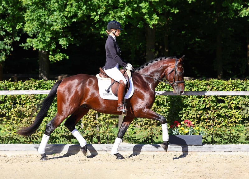Hier geht's zur Kollektion und Online-Registrierung: https://auktion.pzvbw.de/auctions MwSt. 19 % Typcharmanter Junghengst, der bereits mehrfacher Sieger in Reitpferdeprüfungen ist. Charming Youngster, who was winner in two riding horse classes. M: Dr. L MM: Van Gogh v. Vancour (int. Spr. S); Conquistador 38 v. Consotho (Spr. S);Connara v. Calido I (Spr. S) MMM: Festival L v. Favorit ASK (Spr. L), Lill v. Levistan (Spr. S), Queraz v. Quaterback (Dr. M); Betty 272 v. Belissimo M (Dr. M), Dadiva Desperada v. Desperados (Dr. M)