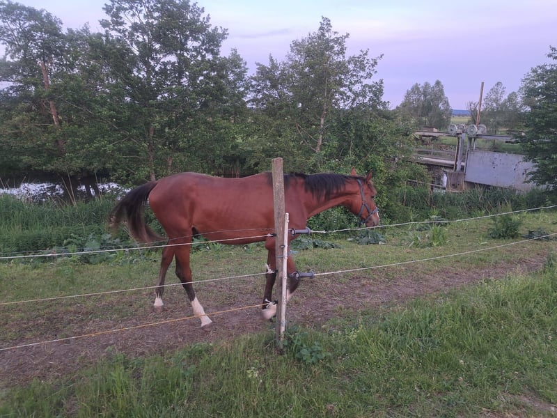 **Advertisement for sale: German Sport Horse - Stallion** A promising young stallion is for sale: - **Breed:** German Sport Horse - **Sex:** Stallion - Year of birth:** 2022 - **Color:** bay - Height:** 170 cm - **Discipline:** Dressage This magnificent stallion impresses with his elegant appearance and great potential in dressage. With his harmonious conformation and impressive height of approx. 172 cm, he is a real eye-catcher. He is already very willing and talented to learn. Interested parties are cordially invited to see the qualities of this young horse for themselves. For further information and to arrange a viewing appointment, please do not hesitate to contact us. Contact us today and secure this exceptional young talent for yourself!