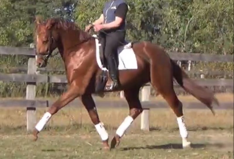 Dieser ausdrucksstarke bildschöne und brave Hengst von Escamillo x Quaterback verfügt über 3! überdurchschnittliche GGA, Nervenstärke und einem ausgeglichenen Charakter und macht auch einen guten Sprung. Er stand mit zwei weiteren Hengsten zusammen neben Stuten und war dabei sehr verträglich. Er könnte somit wohl auch mit Wallachen zusammen gehalten werden. Er war noch nie krank oder verletzt. Röntgenbilder ohne Befund. Die Halbschwester des Hengstes von Escolar war bereits sechsjährig M-erfolgreich und gehörte trotz weniger Starts sowohl 5- als auch 6-jährig zu den zehn erfolgreichen Pferden des Verbandes. Selbstverständlich kann er auf Wunsch gelegt werden. Escamillo war Prämienhengst seiner Körung 2017 in Verden, legte 2018 seinen 14-Tage-Test mit der Dressurnote 9,08 ab und absolvierte 2020 seinen Sporttest unter Helen Langehanenberg mit der Siegerbewertung von 9,36. Unter der Olympia-Teamzweiten qualifizierte er sich auch fünfjährig mit einer 9,5 für die Dressurpferde-Bundeschampionate. Züchterisch gehört Escamillo schon jetzt zu den erfolgreichsten Beschälern. Quaterback, selbst Bundeschampion (Note 10,0 auf den außergewöhnlichen Trab). Der zuletzt auf Platz vier der weltbesten Dressurvererber rangierende Elitehengst stammte aus der Neustädter P-Familie und sammelte nach seinem überragenden Sieg auf dem Bundeschampionat 2006 wiederholt Titel in Dressuren bis zur schweren Klasse. Weltweite Maßstäbe setzte Quaterback allerdings nicht im aktiven Sport, sondern in der Zucht. So lieferte der Quaterman-Sohn zahlreiche gekörte Hengste sowie im Grand Prix-Sport erfolgreiche Nachkommen.