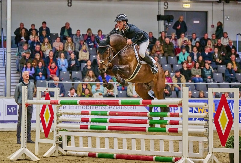 Stam van Sprieße Ares, de nobele zoon van Askari en Diarado, begon zijn carrière met een knal: als reservewinnaar van de DSP-keuring in München/Riem trok hij alle aandacht. Zijn indrukwekkende hengstenprestatieproeven, waarbij hij met individuele cijfers tot 9,0 voor zijn rijdbaarheid uitblonk, laten geen twijfel bestaan over zijn uitzonderlijk talent. De donkerbruine charmeur, gefokt door ZG Netzband uit Salzwedel, is een echte aanwinst voor de hengstenlijn – een belofte voor fokkerij en sport. Maar Ares overtuigt niet alleen op papier. Vorig jaar liet hij onder Sven Rudolph zien dat hij ook op sportief niveau mee kan doen in de top. Met zelfverzekerde prestaties op het Bundeschampionat en de wereldkampioenschappen voor jonge springpaarden in Lanaken/BEL bewees hij indrukwekkend zijn enorme potentieel. Uit de gerenommeerde stam van Sprieße komt onder andere DSP Cool Hill, die met Simone Blum op 4*-niveau uitblonk. Ook de directe moederlijn bracht internationaal succesvolle springsterren voort, zoals Super Super Mario, die onder Andreas Kreuzer voor opschudding zorgde.