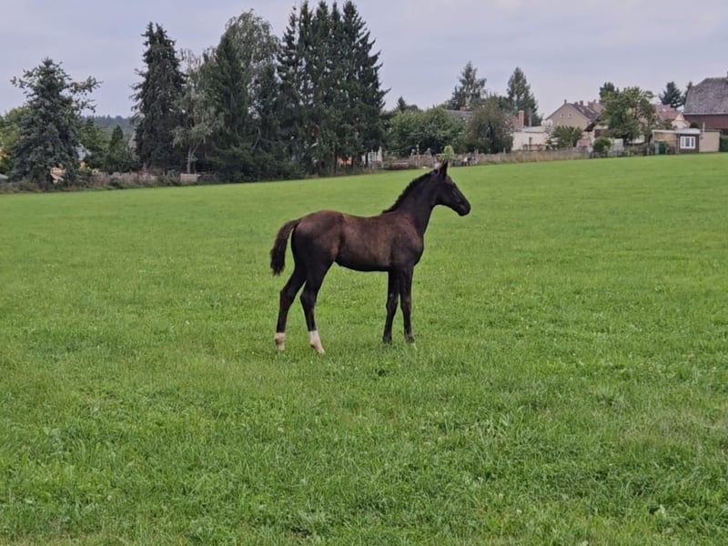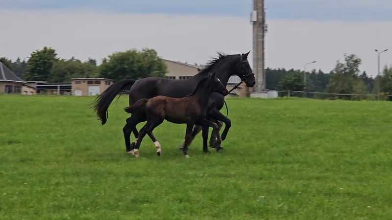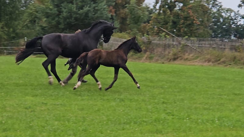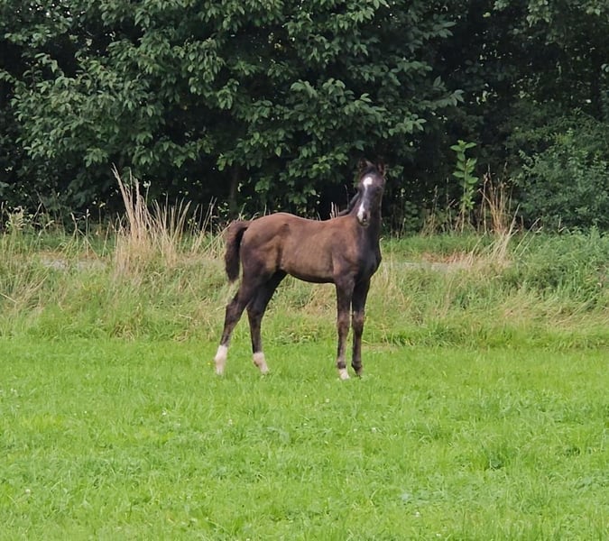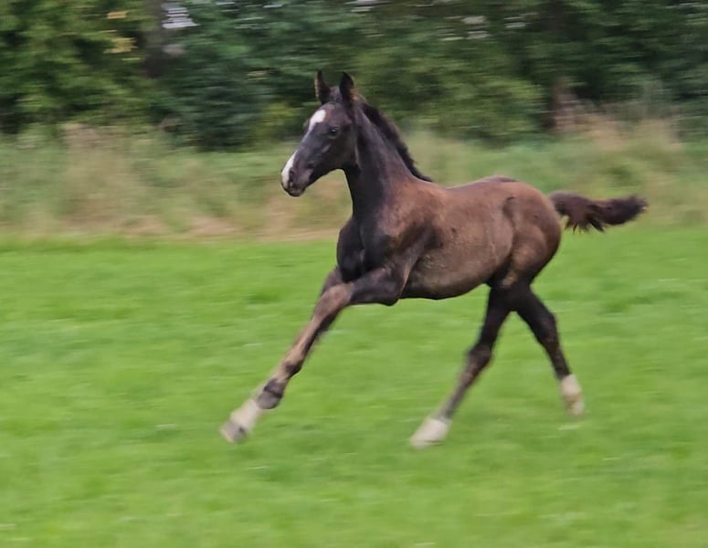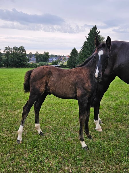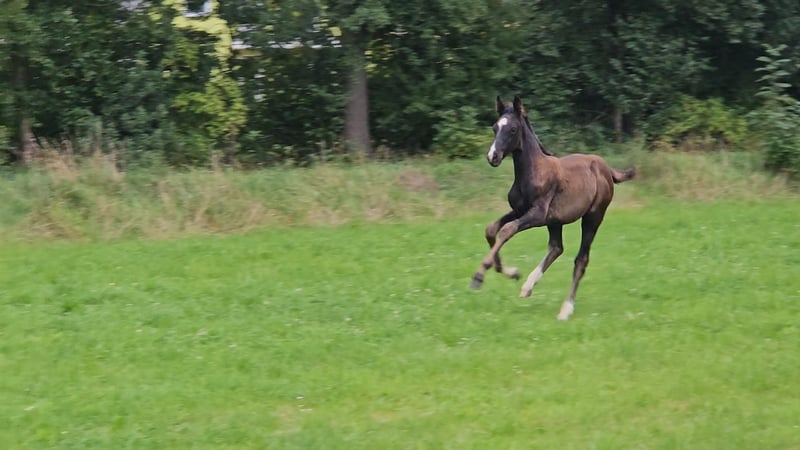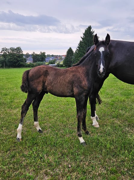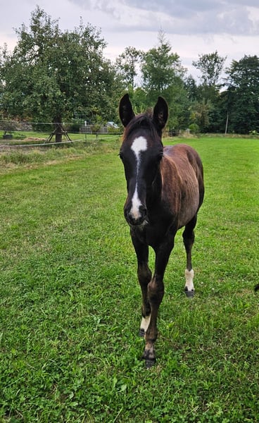 Zum Verkauf steht aus unserem diesjährigen Fohlenjahrgang dieses typvolle,bewegungsstarke Rapphengsfohlen von "Element of Crime" aus einer "Shomari S" Mutter. Zur Fohleneintragung bewertet mit 26 Punkten und damit Championatsqualität. Edison steht im mittleren Rahmen,geschätztes Endmaß 1,65 m.Vom Charakter her umgänglich und damit sehr gut händelbar. Er ist mittlerweile von seiner Mutter abgesetzt worden und bereit für ein neues Zuhause. Bei Interesse gerne melden unter der 01714773611
