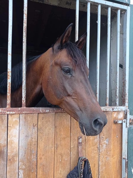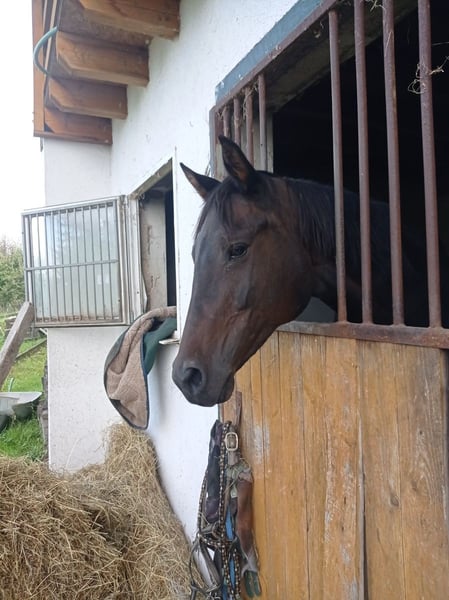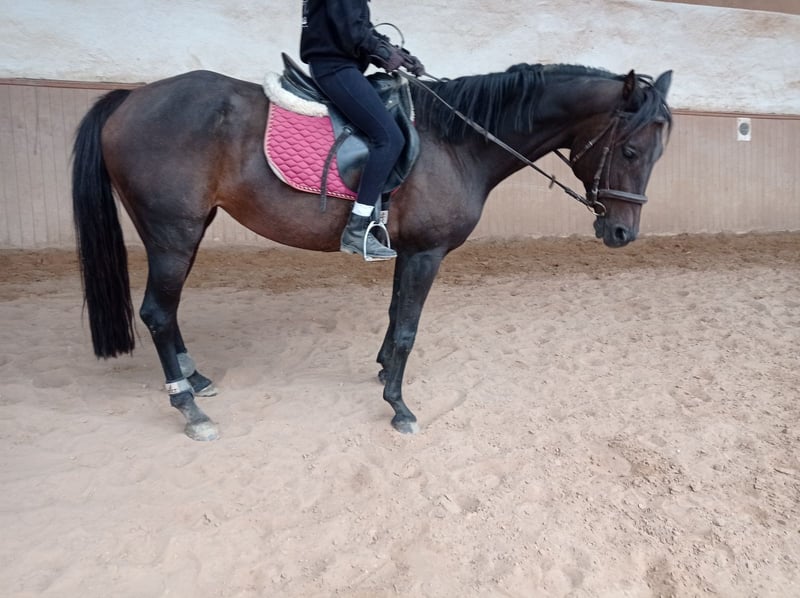 For sale: very well-behaved 10-year-old dark brown mare, 1.64 m tall, goes nicely in the arena and on trails, allows children to groom, lead, and ride her, absolutely calm in handling and riding, has never bucked or similar, has full papers, also goes calmly alone on trails, ideal horse for trail riding as she is totally unflappable, is vaccinated and dewormed, farrier and loading friendly, barefoot. If interested, please contact via WhatsApp at 01520-1714539, and I will send videos.
