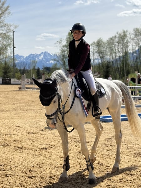 This stunning 9-year-old mare impresses in the show jumping arena with her exceptional overview, agility, and ambition. She has plenty of "go" when needed, yet remains consistently pleasant to ride and very easy to control. In the current season, she has demonstrated her talent with a 14-year-old rider: 🏆 National Cup Winner 2025 🥇 Winner at CSI1* in Samorin 🏅 Numerous additional wins and placings in show jumping classes this season The mare jumps with heart, technique, and great talent. Thanks to her quick reactions and agility, she has already secured many jump-offs. This also makes her an ideal partner for amateurs and young riders. Off the course, she is a real sweetheart – gentle, uncomplicated, and free of vices. Whether grooming, loading, or at the blacksmith: always well-behaved and people-oriented.