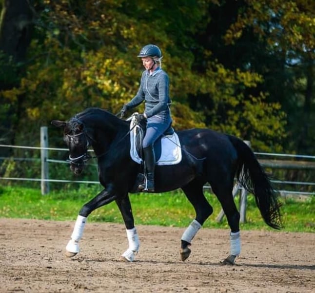 Koń sportowy niemiecki, klacz, kasztanowata, 183 cm Duża, kochająca klacz La Petit Noir nosi przydomek Pitti. Ma 9 lat, jest otwarta na człowieka i przyjazna, pochodząca od Le Vivaldi x Fürst Heinrich x Amerigo Vespucci xx. Jest energiczna, długonoga, porusza się z szerokim krokiem, ma mocny impuls z zadnich nóg i wzorowy charakter. Została zarejestrowana w księdze stadnej I Związku Hodowlanego Brandenburgii-Anhalt z oceną 7,0. Jej usposobienie jest czujne i wrażliwe, reaguje na najdelikatniejsze sygnały. Jest towarzyska w stadzie i obecnie mieszka z klaczami i wałachami. Opiekuje się troskliwie młodymi w stadzie. W zakresie ujeżdżenia jest na poziomie A, jednak z powodu urazu na pastwisku nie jest już jeźdzalna. Chętnie jednak spędza czas na głaskaniu, lonży, spacerach i w towarzystwie. Jest absolutnie przyjazna wobec ludzi i bardzo ostrożna wobec dzieci! Dzięki swojemu przyjaznemu usposobieniu i spokoju nadaje się do hodowli lub jako towarzysz. Oczywiście była regularnie szczepiona i odrobaczana. Bez problemu wchodzi do przyczepy i jest bardzo spokojna podczas czyszczenia kopyt (czysty kopytny). Jej ojciec, Le Vivaldi, to energiczny ogier o nowoczesnym wyglądzie. Został wyróżniony jako prymus podczas kobyłkowego przeglądu w Verden w 2014 roku, a w 2015 pomyślnie przeszedł 30-dniowy test w Neustadt/Dosse. W 2017 roku uzyskał ponadprzeciętny wynik w testach sportowych w Münster/Handorf, zdobywając wysokie oceny we wszystkich częściach i zakwalifikował się do Mistrzostw Federalnych z oceną 8,6. Jego potomstwo otrzymało liczne wyróżnienia w różnych regionach hodowlanych i osiągało ponadprzeciętne ceny na aukcjach. Z ciężkim sercem oddaję ją w dobre ręce i życzę, aby znalazła dom w stajni otwartej lub z dużym wybiegiem, gdzie będzie nadal doceniana i troskliwie pielęgnowana. Cena: do negocjacji Lokalizacja: Schönwalde-Glien Kontakt: Antje Nitzschmann, 0170/48 12 889
