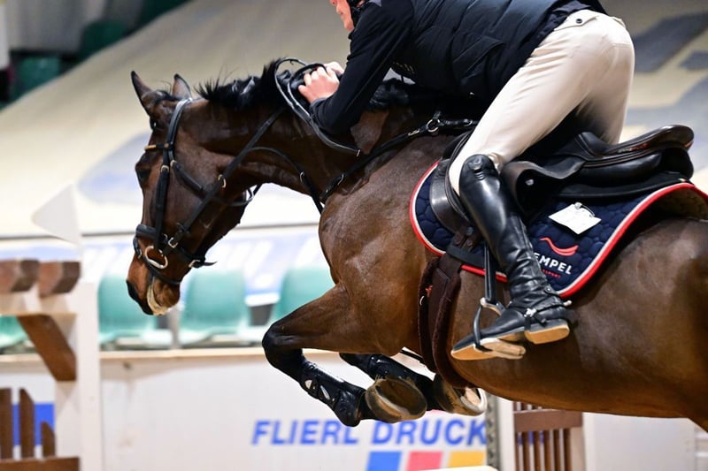 Kir-Royal is a 10-year-old bay German sport horse mare standing at 16.3 hh. She impresses with her intelligence, diligence, and attentive nature. In daily work, she demonstrates motivation, rideability, and a pleasant demeanor. The mare has achieved multiple top placements up to M** level and has competed successfully at S*. She is characterized by her caution, good overview, and willingness to perform over fences. Thanks to her balanced temperament, she can also be ridden daily by children without any issues.