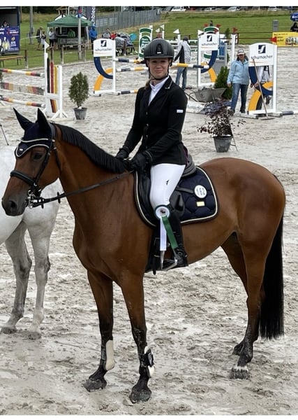 Vendemos nuestra yegua de 12 años, inalterada y en excelente forma, Pearl. Ha obtenido muchas victorias y colocaciones en concursos de nivel M* y M**, y en la última temporada también fue clasificada en S*. La mayoría de su entrenamiento y monta ha sido realizado casi exclusivamente por un amateur. Pearl conoce bien su trabajo en el recorrido y siempre quiere hacer las cosas correctamente. Sin embargo, no es recomendable para jinetes principiantes, ya que es demasiado sensible y cautelosa en el salto. La vendo por motivos de salud, solo a compradores que puedan ofrecerle un buen puesto.