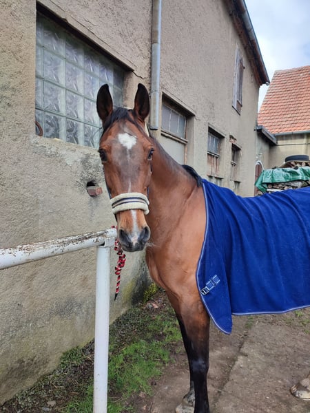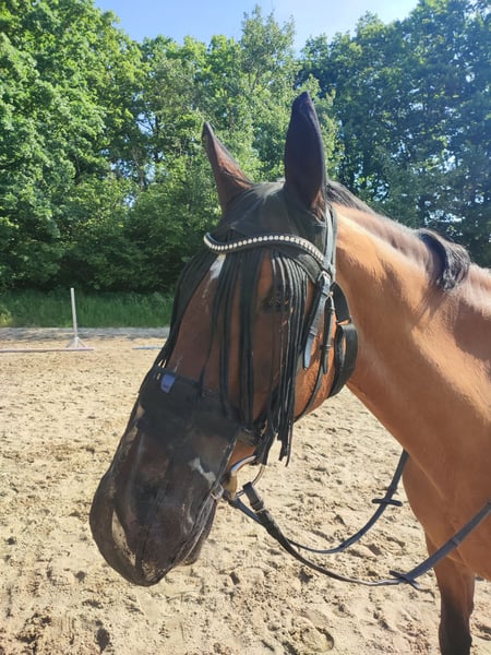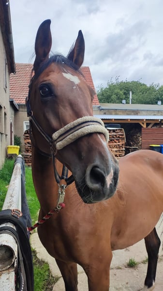 Ich suche für meine 18-jährige Warmblutstute Amber ein neues Zuhause als Freizeitpferd. Aufgrund von persönlichen/privaten anstehenden Veränderungen werde ich leider nicht mehr in der Lage sein, mich so um sie zu kümmern, wie sie es verdient hätte. Für ihre 18 Jahre ist Amber noch top fit. Sie hat ein Stockmaß von 1,66 m und selbstverständlich einen Pass, ist regelmäßig geimpft und entwurmt. Amber liebt die regelmäßige Arbeit und hat sehr viel Spaß daran, aber auch kein Problem damit ihre Zeit auf der Koppel zu genießen. Sie testet gerne ihre ReiterIn (ganz Stute) ist aber mit klaren Anweisungen und Impulsen ein absolutes Lehrpferd und einfach traumhaft zu reiten. Sie hat mit unter einen spritzigen Galopp, geht dabei aber nicht durch und lässt sich gut händeln. Trotzdem ist Amber kein Anfängerpferd, da sie reiterliche Unsicherheit auch für sich zu nutzen weiß. Im Sommer hat sie hinten häufiger dicke Beine. Dies schränkt sie jedoch nicht ein und ist nach Bewegung kein Thema mehr. Sie ist Schmiedefromm, komplett beschlagen und im Winter geschoren. Amber ist nicht verladefromm und stand in den letzten Jahren auf der Koppel eher alleine. Abzugeben mit allem Zubehör (Sattel auf Anfrage) was sie besitzt (Decken, Trense, Halfter, etc.) Meldet euch bei ernsthaftem Interesse gerne für weitere Infos und ein erstes Kennenlernen unter 01725154779