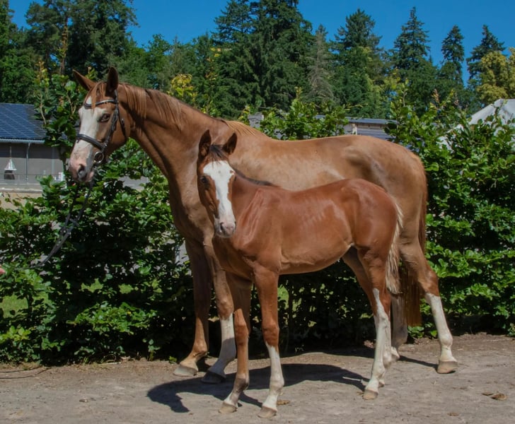 Esta joven dama convence por su realmente buena estructura, su traducción y su dibujo individual. Su padre, Tornado SH (Toulon x Diamant de Semilly), ya ha tenido un gran éxito en la Youngstertour internacional a la edad de 6 años y es un ganador en serie en pruebas de salto para caballos hasta la clase M. Un enorme potencial y una traducción adecuada para los grandes escenarios de nuestro tiempo son solo algunas de las ventajas que se pueden mencionar aquí. También la línea materna es muy interesante. La madre de Balou Peggio proviene de la hermana completa de nuestro semental Gepsom. Gepsom ha tenido, entre otros, un gran éxito en competiciones de salto de hasta 1,55 en el Derby de Hamburgo o en el Campeonato Alemán en Balve. Este potro de yegua combina el espíritu de lucha y la enorme deportividad de la línea materna con el fulminante potencial, la abundante traducción y la imponente altura de la línea paterna en un paquete total de ganar-ganar.
