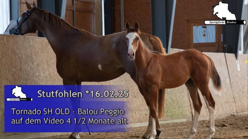 Questa giovane signora si distingue per il suo ottimo equilibrio, la sua capacità di salto e la sua particolare marcatura. Suo padre, Tornado SH (Toulon x Diamant de Semilly), è già un cavallo di grande successo nella Youngstertour internazionale a soli 6 anni ed è un vincitore di serie nelle competizioni di salto ostacoli fino alla classe M. Un enorme potenziale e una capacità di salto adatta ai grandi palcoscenici del nostro tempo sono solo alcuni dei suoi punti di forza. Anche il ceppo materno è molto interessante. La madre di Balou Peggio proviene dalla sorella piena del nostro stallone Gepsom. Gepsom ha ottenuto numerosi successi in concorsi di salto ostacoli fino a 1,55 metri, come il Derby di Amburgo e il Campionato Tedesco a Balve. Questo puledro femmina unisce lo spirito combattivo e l'enorme sportività della linea materna con l'eccezionale potenziale, la generosa capacità di salto e la robusta taglia della linea paterna, creando un pacchetto complessivo vincente.