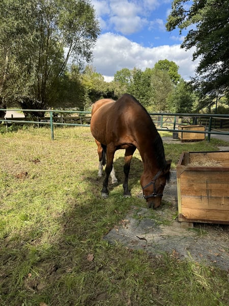Lisola has received good training in dressage and show jumping. She was first backed in 2008, as she had her third foal. She can still be ridden age-appropriately, 2 times a week, and has 2 sessions of groundwork. She is safe in the field and is well manageable. She is accustomed to box housing with daytime turnout and paddock. Not suitable for open stabling - important!!! Group maximum of 4 horses. Since October 2023, she has been diagnosed with Chushing's, but is well managed with 3/4 of a tablet. A horse that brings a lot of joy in work. I wish for a calm home for her, where she can stay until the end.
