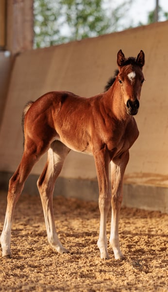 Te koop staat een veelbelovende merrie van Esmeraldo, geboren in 2024. Ze is een expressieve merrie met een geschat eindstockmaat van 165 cm en overtuigt door haar uitstekende eigenschappen in het springen. Deze getalenteerde merrie toont nu al groot potentieel en is ideaal voor ambitieuze ruiters die op zoek zijn naar een betrouwbare partner voor de springsport. Ze valt op door haar beweeglijkheid, haar evenwichtige karakter en haar leergierigheid. Ze is goed in de omgang en heeft een vriendelijk karakter, wat haar tot een ideale metgezel voor ruiters van alle ervaringsniveaus maakt. Of het nu in de training of op het wedstrijdterrein is, ze zal zeker veel plezier brengen. Bij interesse of verdere vragen sta ik u graag te woord. Laat deze kans niet voorbijgaan om een uitzonderlijk paard aan te schaffen!