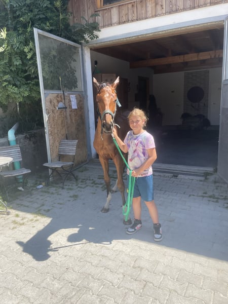 Zum Verkauf steht eine vielversprechende Stute von Esmeraldo, geboren im Jahr 2024. Sie ist eine ausdrucksvolle Stute mit einem geschätzten endStockmaß von 165 cm und überzeugt durch ihre hervorragenden Eigenschaften im Springen. Diese talentierte Stute zeigt bereits jetzt großes Potenzial und ist ideal für ambitionierte Reiter, die auf der Suche nach einem zuverlässigen Partner für den Springsport sind. Sie besticht durch ihre Bewegungsfreude, ihren ausgeglichenen Charakter und ihre Lernbereitschaft. Sie ist gut im Umgang und hat ein freundliches Wesen, das sie zu einer idealen Begleiterin für Reiter aller Erfahrungsstufen macht. Ob im Training oder auf dem Turnierplatz, sie wird sicherlich viel Freude bereiten. Bei Interesse oder weiteren Fragen stehe ich Ihnen gerne zur Verfügung. Lassen Sie sich diese Gelegenheit nicht entgehen, ein außergewöhnliches Pferd zu erwerben!