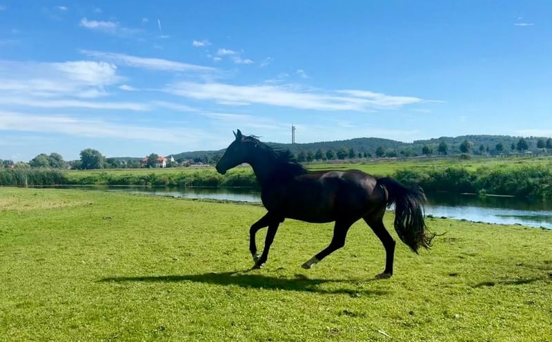 **For Sale: German Sport Horse** For sale is a talented and promising mare from the year 2022. **Features:** - Breed: German Sport Horse - Gender: Mare - Year of Birth: 2022 - Color: Bay - Height: 155 cm This young mare shows great potential in show jumping and impresses with her athletic expression and eagerness to move. She is well-trained, has a friendly character, and is suitable for both leisure and competition riding. If you are interested or need further information, please feel free to contact me. Viewings and test rides are possible by arrangement. We look forward to your inquiry!