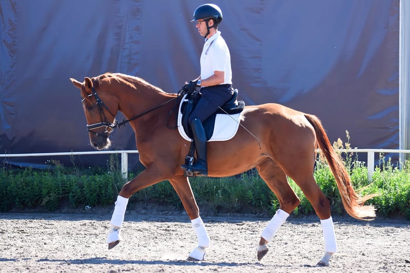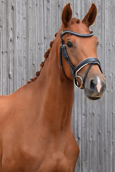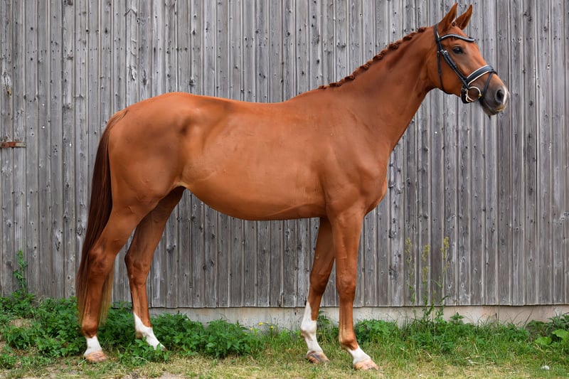 For sale is a beautiful and uncomplicated mare with three very good basic gaits. The very expressive canter is particularly noteworthy, as well as the relaxed trot, which is endowed with a lot of mechanics. She is easy to ride and has plenty of go. In handling, she is always friendly and easy to manage. Sire Shu Fu, at only 8 years old, is already successfully competing at the advanced level and has the coveted Sezuan as his father. His daughter, for sale here, is both in demeanor and movement pattern his exact likeness. The dam, state premium mare Flockentanz, was the winner of her mare registration at three years old and completed an outstanding mare performance test in Neustadt/Dosse, scoring 8.5 for trot, canter, and rideability. A current radiographic examination will be conducted in the coming weeks. The dam had three-year-old radiographs, including the back, with no findings. Due to her age, the mare is not suitable for beginners. Experienced hands with horse knowledge are desired.