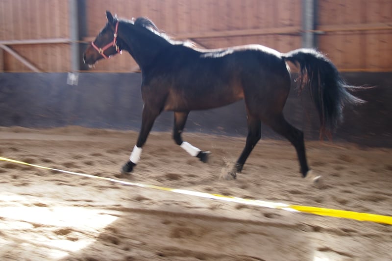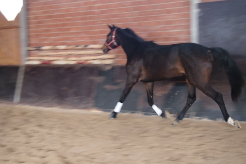 Unsere 3-jährige Stute von Belantis II ist ein sehr charmantes und wunderschönes Pferd. Sie vereint Präsenz und Eleganz mit einem exzellenten Bewegungsablauf. Sie stammt aus der erfolgreichen Zucht von Bernd Schäfer und ist hier in einer gemischten Herde/Familienverband und unter besten Bedingungen fachkundig aufgezogen worden. Unsere Pferde wachsen im hessischen Bergland auf und sind dadurch trittsicher und sehr gut ausbalanciert. Die artgerechte Haltung hat ihr eine gesunde körperliche Entwicklung, ein gutes und korrektes Fundament sowie ein ausgeglichenes Sozialverhalten ermöglicht. Diese ausgesprochen hübsche Stute hat einen sehr ergiebigen Schritt, einen guten geregelten, lockeren und schwungvollen Trab. Besonders hervorzuheben ist der außergewöhnlich gute Galopp, der an der Longe gut untergesprungen und auf der Kreislinie ausbalanciert ist. Im Freilauf zeigt sie einen ergiebigen und äußerst raumgreifenden Galopp, den sie sicher variieren kann und auf kleinstem Raum gesetzt und sicher ohne Hektik wenden kann. Der bewährte Mutterstamm brachte bereits Pferde hervor, die in allen Sparten S-erfolg-reich laufen. Über die Mutter kommt das bewährte Edelblut und sie kann bereits Nachkommen vorweisen, in bis M-Dressur siegreich sind. Aufgrund der außergewöhnlich guten Galoppade können wir uns durchaus vorstellen, dass diese Stute ihren Weg auch in der Vielseitigkeit gehen kann - insbesondere auch, weil die Vollschwester der Mutter vor ihrem Zuchteinsatz in der Vielseitigkeit erfolgreich unterwegs war. Die Mutter sowie weitere Geschwister können sehr gerne beim Züchter besichtigt werden. Im täglichen Umgang präsentiert sie sich verschmust, unkompliziert, nervenstark und absolut brav - ein Pferd, das man auf Anhieb sympathisch findet! Eine beeindruckende, liebevoll aufgezogene junge Stute mit Top-Aufzucht, hervorragender Abstammung und vielseitiger Perspektive. Ob als Dressurpferd mit Zukunft oder als leistungsstarke Partnerin für die Vielseitigkeit oder als nervenstarkes Pferd für den Amateur. Diese Stute überzeugt durch hohe Qualität, hervorragenden Charakter und Herz! Auf Wunsch kann das Pferd auch angeritten und ggfs. weiter ausgebildet werden. Bei weiterer Ausbildung steigt selbstverständlich der Preis. Anfragen ausschließlich über WhatsApp oder telefonisch: 0174-9788997.