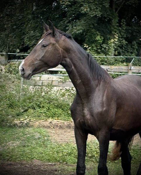 Tolle 3-jährige Stute von So Perfect x Diamond Hit zu verkaufen. Seit wenigen Wochen geritten macht sie uns sprachlos mit ihrer Coolness und Rittigkeit! Brav in allen Lebenslagen und mit genügend go und Schwung ausgestattet. Stockmaß ca. 1,72 aktuell. Direkt vom Züchter ohne jegliche schlechte Erfahrungen. Aufgrund etwas weicher Fesselung hinten günstig und zeitnah abzugeben.
