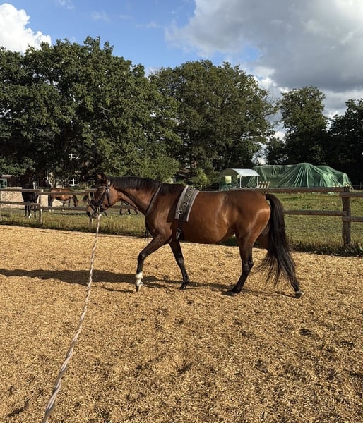 À vendre, notre magnifique Daily. Daily est une jument de petite taille qui a grandi en bonne santé au sein d'un troupeau. Elle maîtrise toutes les bases et a déjà été longée et préparée pour le monte. Elle a été régulièrement vermifugée et a consulté le dentiste. Son caractère se distingue particulièrement. Toujours claire et honnête, elle est très facile à manipuler. Elle est habituée à la fois à l'abri ouvert et à la vie en box. Actuellement, elle mesure environ 157 cm au garrot. Nous pensons qu'elle serait très bien adaptée pour le concours complet. Elle est enregistrée comme Cheval de Sport Allemand mais est issue de l'élevage holsteinois.