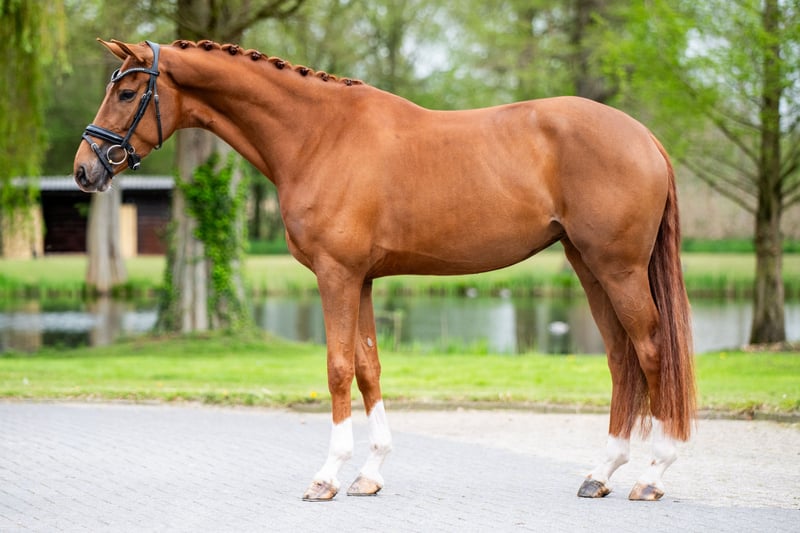 Was für ein süßes Mädchen sie ist, und sie hat auch die passenden Moves! Valar ist seit einigen Monaten unter dem Sattel, sie hat ein wunderbares Wesen und möchte ihrem Reiter wirklich gefallen. Sie ist eine Freude im Stall, und wir sind überzeugt, dass sie viel Talent für die Zukunft besitzt. Daher sucht sie eine erfahrene Reiterin oder einen erfahrenen Reiter, um ihre Ausbildung fortzusetzen 🧡 Bitte kontaktieren Sie mich per WhatsApp: +31641571597 Valar 2022 Stute Vitalis x Secret 1,69 m