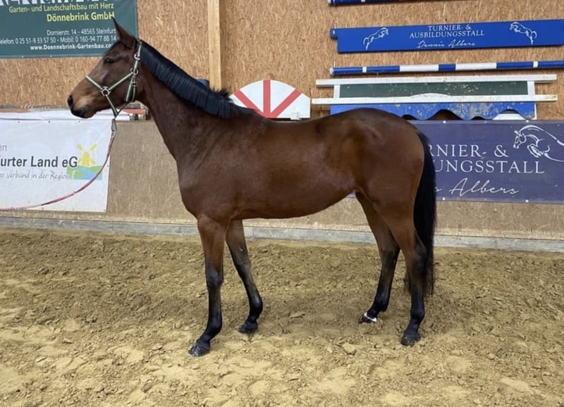 Zum Verkauf steht eine langbeinige, großrahmige Nachwuchsstute mit drei sehr guten Grundgangarten. Sie überzeugt mit taktsicherem Schritt, schwungvollem Trab mit aktiver Hinterhand sowie einem bergauf angelegten, gut ausbalancierten Galopp. Die Stute ist brav im Umgang, menschenbezogen und lernwillig. Unter dem Sattel zeigt sie sich motiviert und unkompliziert. Die Stute ist selbst gezogen, und wurde regelmäßig entwurmt und geimpft. Eine interessante Perspektive für Reiter, die sich ein qualitätsvolles Pferd zur weiteren Ausbildung sichern möchten. Preis zzgl. gesetzlicher MwSt.