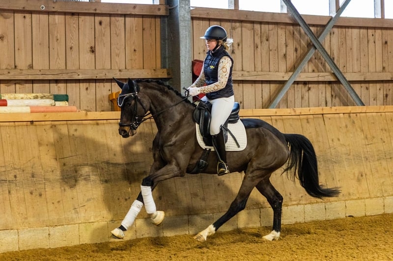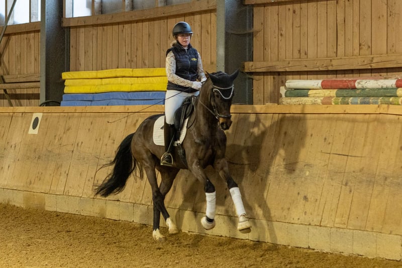 Na sprzedaż jest Finesse, 5-letnia klacz DSP po Fürst Romancier z matki Sir Donnerhall - Fidermark. Późno wsiadana, znajduje się na solidnym poziomie DPF A i jest delikatnie przygotowywana w kierunku DPF L. Obecnie odnosi sukcesy i zajmuje wysokie miejsca w DPF A z ocenami sięgającymi 8,42, przy czym szczególnie wyróżnia się ocena 9,0 za przejrzystość. Jest podkowy i transportowa, spokojnie radzi sobie w terenie. W przypadku dalszych pytań proszę o kontakt przez WhatsApp lub telefonicznie.