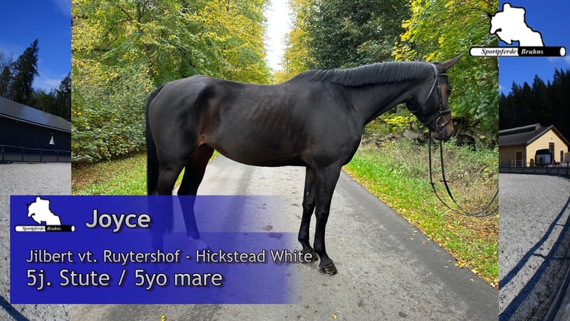 Wir bieten hier eine wunderschöne dunkelbraune Stute, die sicher 1,10m Parcours springt. Sie ist super ausbalanciert und springt sicher einen Wechsel. Joyce springt eine super Art, so dass sie sich als Hunter eignet.