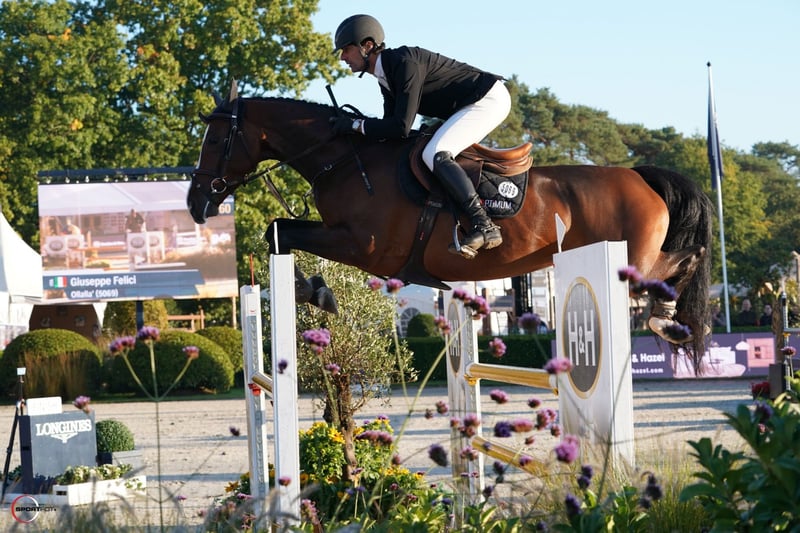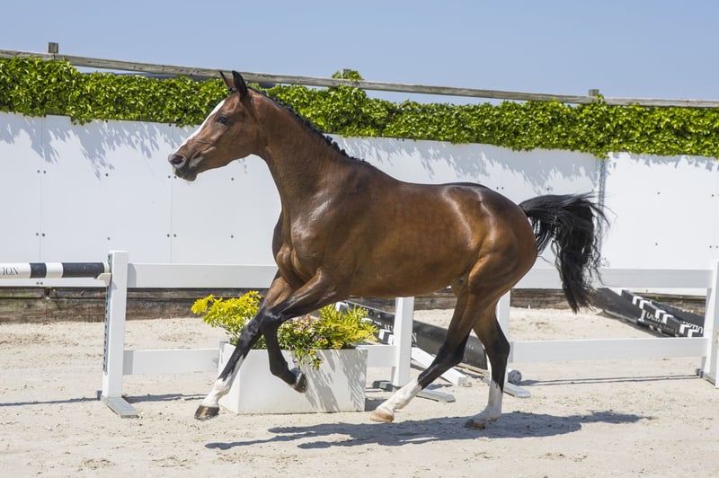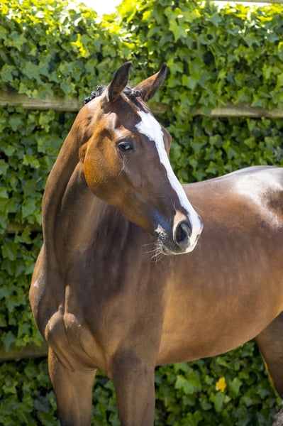 Een sprookjesverhaal dat werkelijkheid werd! Oh La La sprong zich afgelopen weekend naar een 6e plaats in de finale van het Wereldkampioenschap voor 5-jarigen in Lanaken. Het hele weekend lang viel ze op: ondanks de zware en technische parcoursen liet ze keer op keer zien over enorme kwaliteit, inzet en overzicht te beschikken. Oh La La werd als 3-jarige al via onze juli-veiling 2023 verkocht en vertrok toen naar Italië. In Lanaken kwamen we haar opnieuw tegen en wederom was ze een echte blikvanger, wat ons veel positieve reclame opleverde. Toen we met de enthousiaste eigenaar spraken, vertelde hij dat er al veel belangstelling voor dit paard was. Ons voorstel om haar opnieuw via de veiling aan te bieden, zodat iedereen een kans krijgt, viel in goede aarde. Voor de eigenaar ideaal: bij ons bepaalt de markt immers de prijs! Na Lanaken keerde Oh La La terug naar Italië, waar ze geprobeerd of bezichtigd kan worden. Vanuit daar kan ze – zoals altijd met onze hulp – eenvoudig naar iedere bestemming wereldwijd reizen. Stal tot stal levering gegarandeerd. Twee woorden die haar perfect omschrijven: flashy en cute. Oh La La is een merrie met uitstraling en een perfecte manier van springen. Ze is fijn in de omgang, heeft precies genoeg bloed en is een veelzijdig paard voor de springsport, hunterrubrieken of zelfs de eventing. De pedigree is Duits verankerd. Vader Orplid voert de waardevolle genen van de 1.60m Grand Prix-hengst Orlando(Heartbreaker x Darco) en sprong zelf tot 1.50m niveau onder Christof Kauert (GER). Moeder Lacaressa (Lesotho) leverde al twee internationale 1.40m springpaarden: Checkpoint 35 en Romeo 870. Grootmoeder Cares sprong zelf 1.40m parcoursen en is een halfzus van het 1.50m springpaard Der Champ.