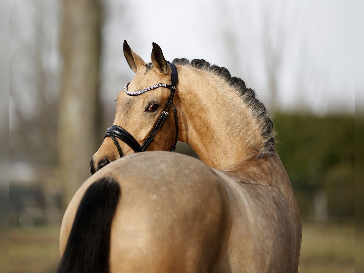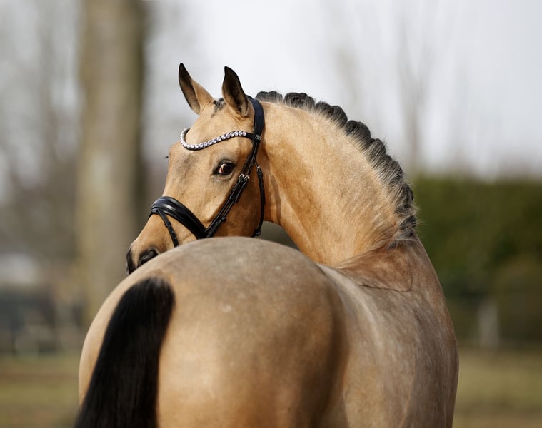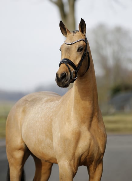 A rarity in every sense! An outstanding dressage prospect dressed in a striking golden coat with an impressive presence. Excellent riding comfort, combined with optimal development potential, superb basic quality, and a very good work ethic, make this young, still unspoiled young horse a highly interesting offering for sport and possibly future breeding. Easy to handle and already ridden by children and teenagers. Sold privately with a recent inspection (including back, neck, and poll).
