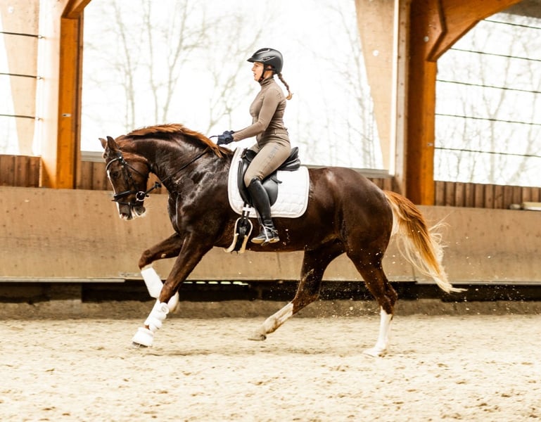 Zum Verkauf steht diese selbstgezogene 5 jährige Stute von Diamant Delux × Dankeschön. Die beeindruckt nicht nur mit ihrem perfekten Exterieur und Farbe, sondern auch mit ihren herausragenden Gangarten und ihren aktiven Hinterbeinen. Im letzten Jahr hat sie auch schon einen Sieg und einige Platzierungen in Dressurpferde A Prüfungen bekommen. Mit dem richtigen Reiter wird diese wirklich besondere ausnahme Stute sicher mal richtig weit auf Turnieren kommen. Bei weiteren Fragen gerne melden