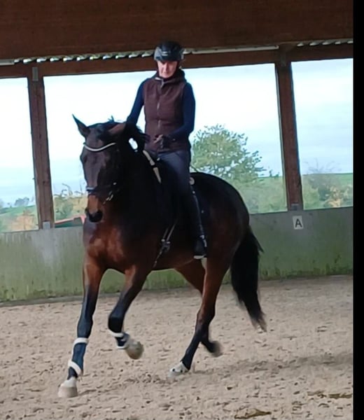 Eine sportliche, eindrucksvolle DSP-Stute, Reitpferde und Dressurpferde A platziert Aufgrund geringgradigen Befundes (aktueller Befundbericht vorhanden) weit unter Wert zu verkaufen!! Wir wünschen uns als Züchter einen Besitzer , der Ihre Qualitäten zu schätzen weiß und sie fördert. Dieses Sportpferd ist genau richtig für ambitionierte Reiter. Videos auf Anfrage. Um Reittourismus zu vermeiden berechnen wir fürs Vorreiten und Probereiten 35.-€. Beim Kauf wird dies gutgeschrieben. Bei Fragen und ernsthaftem Interesse freuen wir uns über Ihren Anruf!