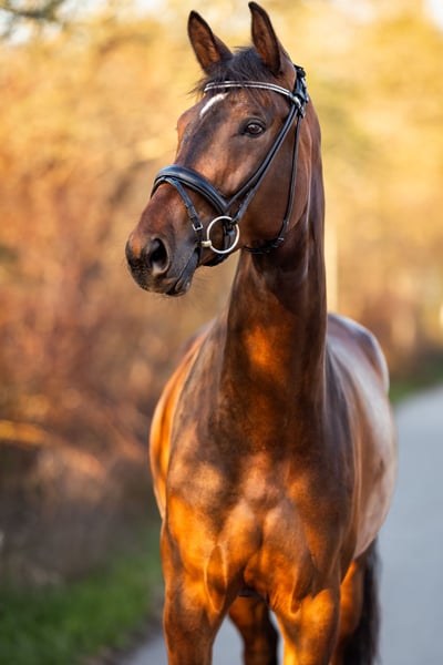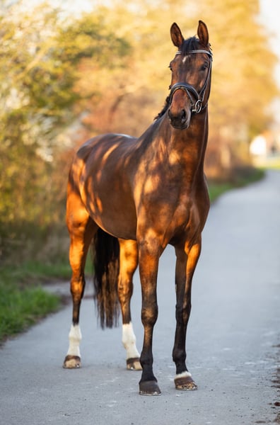 Se stai cercando un puledro da avviare nel grande quadrato e da addestrare autonomamente, qui trovi una vera atleta da disciplina. Dotata di un retrogamba molto attivo e di un’enorme disponibilità alla raccolta, conquista rapidamente i cuori dei cavaliere di dressage. Ha già vinto il titolo di campionessa RPF a 4 anni e, durante l'inverno, a causa della sua crescita, è stata delicatamente rimessa in sesto e ha potuto affrontare le sue prime due gare in dressage A, ottenendo una riserva di quasi 1 punto con punteggi parziali fino a 8,0. In occasione dell’iscrizione al registro mares in München, ha ricevuto un punteggio complessivo di 8,0, con le valutazioni seguenti: passo 8,0, galoppo 9,0 e trotto 10,0. In maneggio si comporta sempre bene, ma desidera essere impegnata e stimolata. Le radiografie del 2025 sono negative e possono essere visionate. Attualmente è di proprietà del selezionatore e viene venduta su incarico. Sono disponibili appartamenti per le vacanze presso la nostra struttura, così da permettere a tutti di conoscerla.