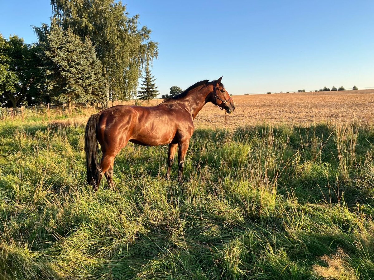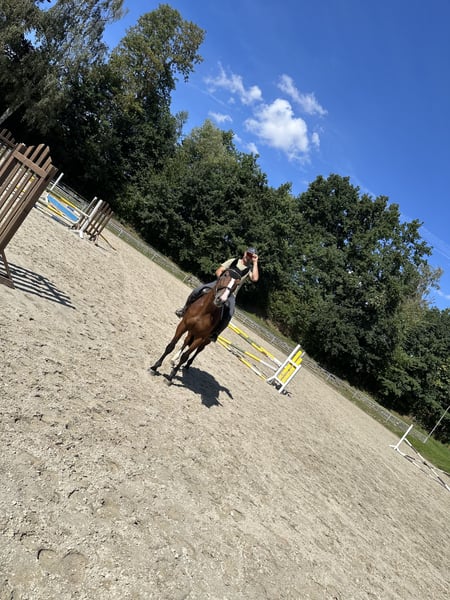 Zu verkaufen: - 6-jährige braune, Stute von Baggio - Stockmaß 1,66 m - Selbstgezogen und schonend angeritten, startklar für Springpferdeprüfungen - Kennt alles – Gelände, Reitplatz, Tierarzt, Hufschmied, Hänger, Hunde, Kinder - im Umgang brav, menschenbezogen und leicht zu handhaben - Temperamentvoll, sensibel und sehr vorsichtig am Sprung - Nicht für Anfänger geeignet - Ideal für ambitionierte Reiter, die ein talentiertes Pferd mit viel Potenzial suchen - Besichtigungen und Probe reiten jederzeit möglich - bisher keine Turniererfahrungen sowie keine Röntgenaufnahmen vorhanden